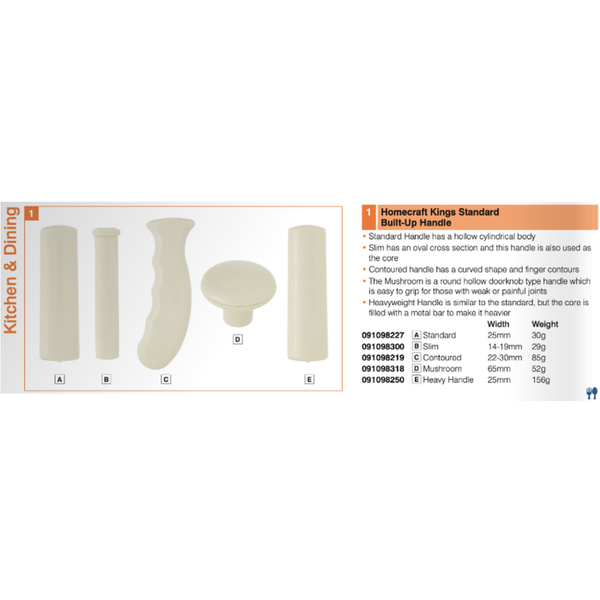 - The Mushroom Handle is a round, hollow doorknob-type handle that's easy to grip, particularly for those with weak or painful joints.