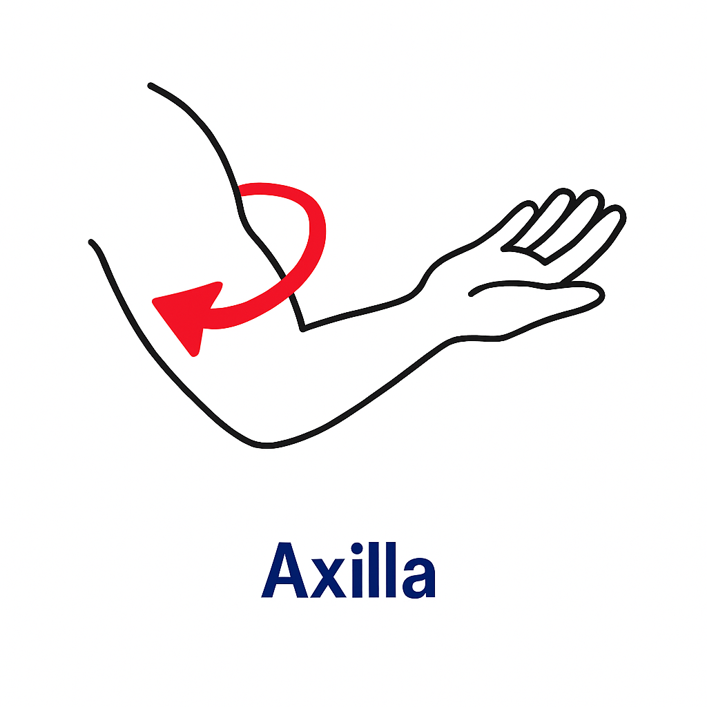 Measure length from the outside of the wrist to the axilla with a slight bend in arm