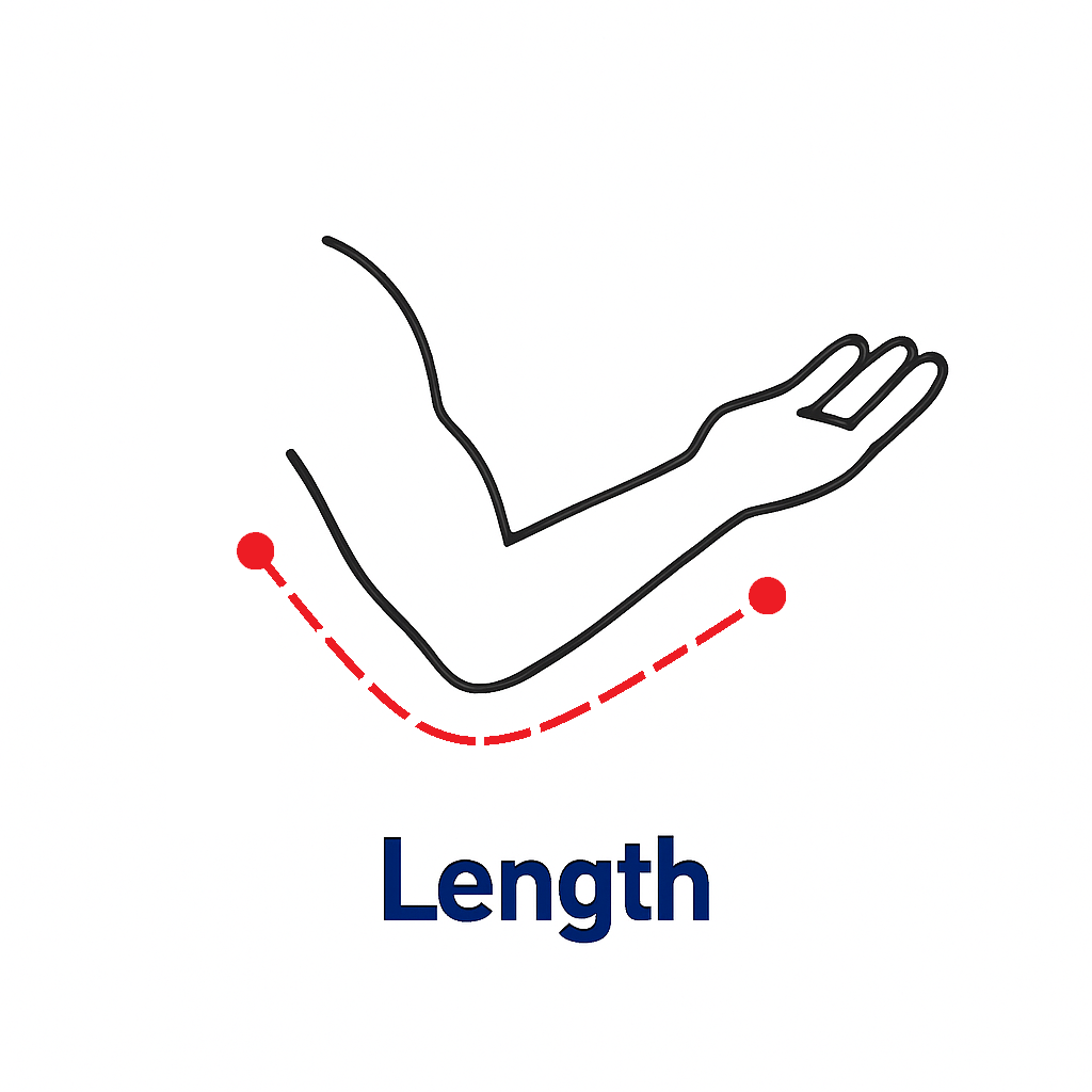 Sizing- To determine length, measure from the outside of the wrist to the axilla with arm slightly bent.