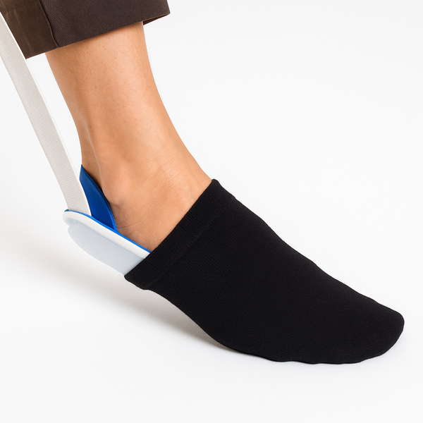 The soft sock aid is to compensate for a disability by helping a person to put on socks or stockings without unnecessary bending at the waist or hips. It is ideal for people with a weak grip. Terry cloth outer covering keeps socks and stockings secure and can be bent to fit any size of socks or stockings.